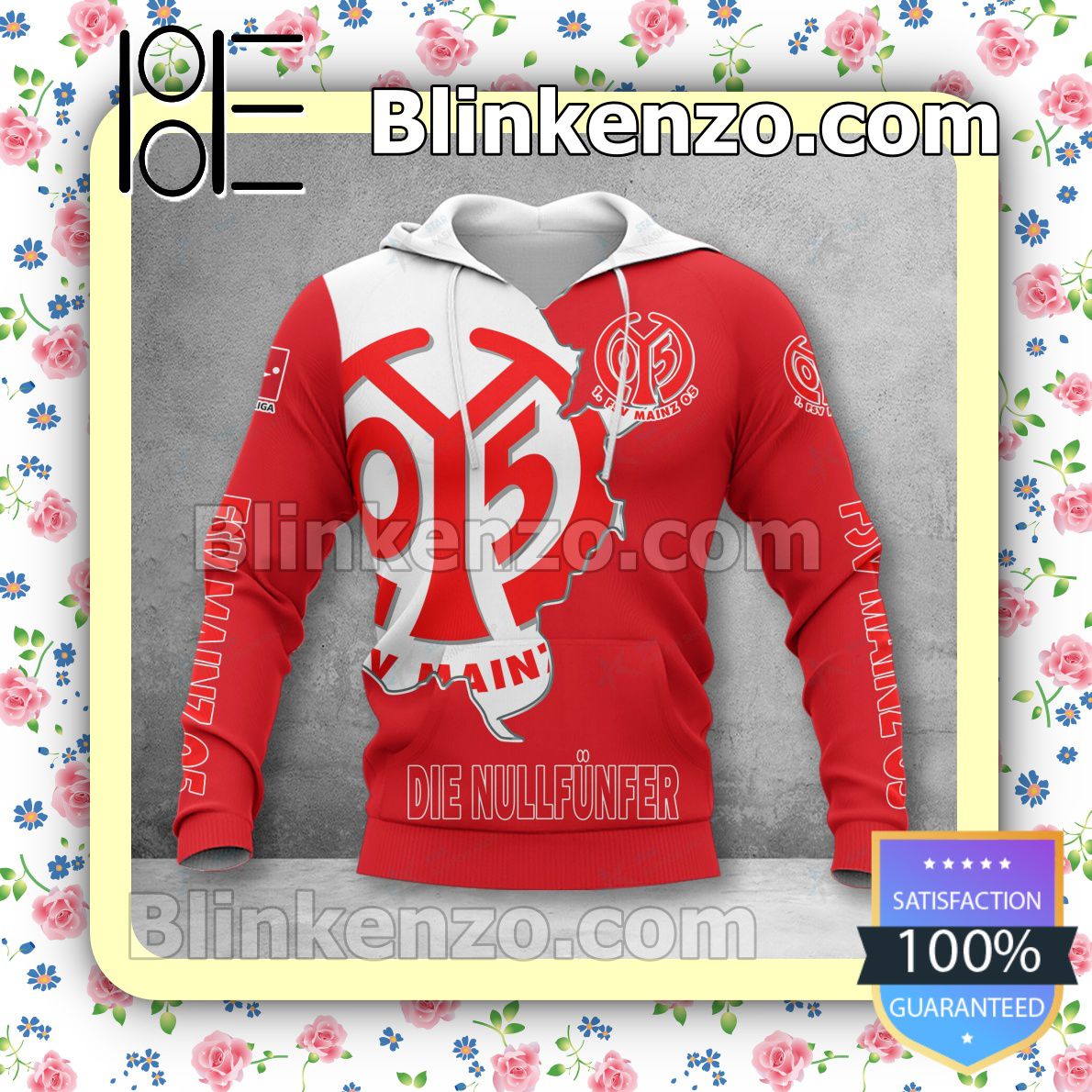 1. FSV Mainz 05 Red Pullover Hoodie Product Features Along with its 1. FSV Mainz 05 graphics, this cozy pullover hoodie features super-soft midweight material. Material: 95% polyester + 5% spandex. The fabric is durable and resistant to wrinkles, shrinking and mildew. Hood with drawstrings. Long sleeve. Front pouch pocket. Midweight hoodie suitable for moderate...