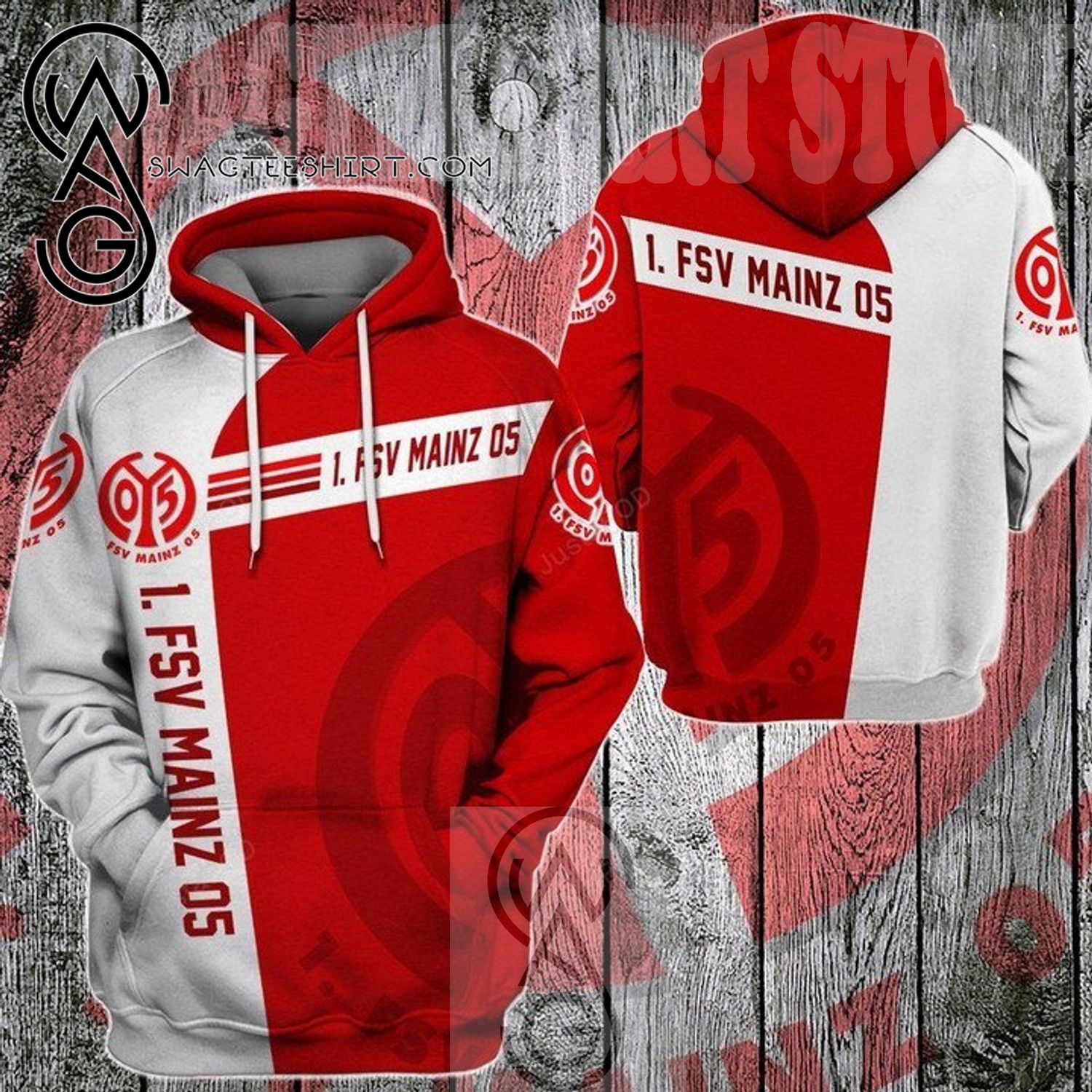 1. FSV Mainz 05 Red White Pullover Hoodie Product Features Along with its 1. FSV Mainz 05 graphics, this cozy pullover hoodie features super-soft midweight material. Material: 95% polyester + 5% spandex. The fabric is durable and resistant to wrinkles, shrinking and mildew. Hood with drawstrings. Long sleeve. Front pouch pocket. Midweight hoodie suitable for...