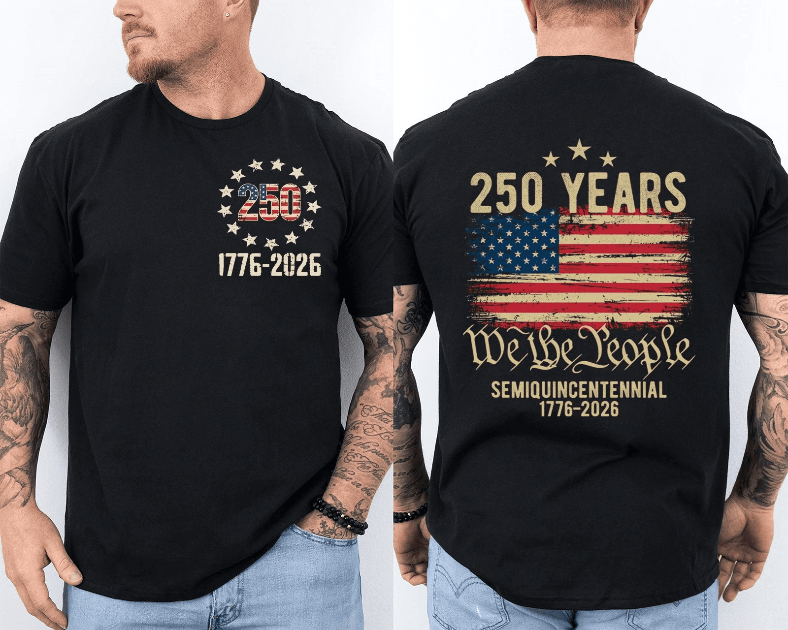 250 Years Of Independence America 250th Years Anniversary Front & Back T-Shirt