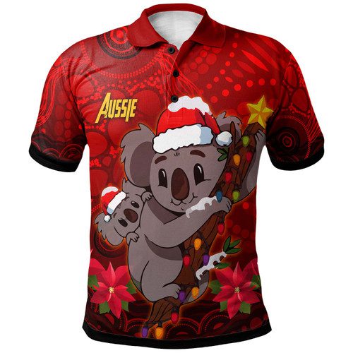 Aboriginal Christmas Polo Shirt – Custom Aussie Koala Christmas Poinsettia with Aboriginal Inspired Polo Shirt