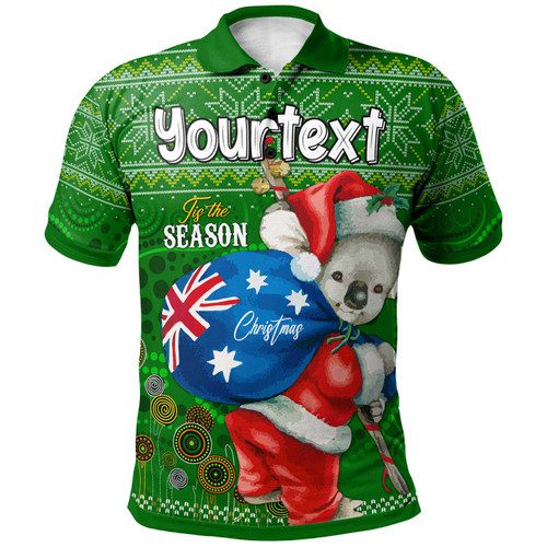 Aboriginal Christmas Polo Shirt – Custom Australia Koala Ugly Christmas with Aboriginal Inspired Green Polo Shirt