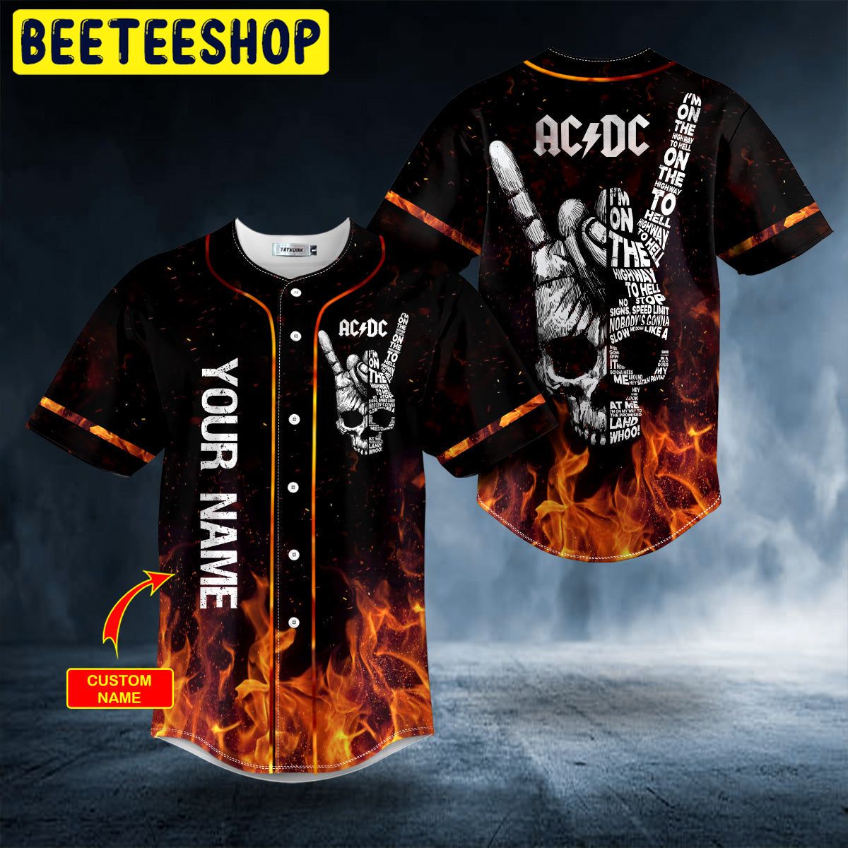 AC/DC Custom Name Hand Skull Baseball Jersey Product Features This AC/DC Baseball Jersey is not only sturdy and durable for long hours of exercising, but also breathable and moisture-wicking to keep you snug all day. Breathable fabric: This Baseball Jersey is made of woven fabric, with moisture-wicking features and a comfortable feel to the skin.?...