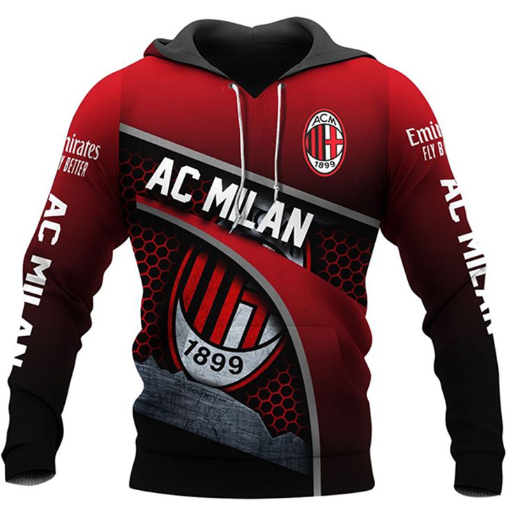 AC Milan 1899 Rossoneri Pullover Hoodie Product Features Along with its AC Milan graphics, this cozy pullover hoodie features super-soft midweight material. Material: 95% polyester + 5% spandex. The fabric is durable and resistant to wrinkles, shrinking and mildew. Hood with drawstrings. Long sleeve. Front pouch pocket. Midweight hoodie suitable for moderate temperatures. Features a...