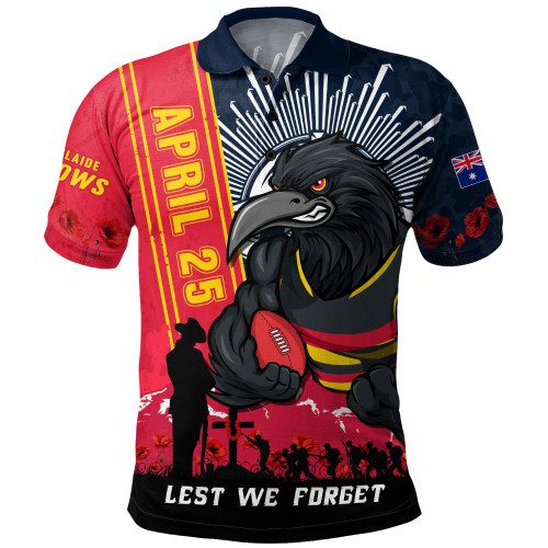 Adelaide Crows Polo Shirt Anzac Day Lest We Forget Memorial