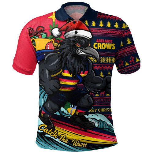 Adelaide Crows Polo Shirt Christmas Holiday Santa Rides The Waves