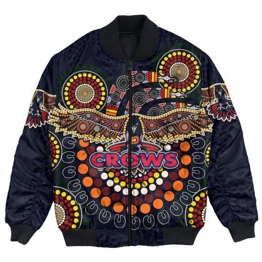 AFL Adelaide Crows Indigenous Black Bomber Jacket Product Features This sweet bomber jacket features crisp Adelaide Crows graphics that put your fandom proudly on display, so no one will be able to question your allegiance. Always on-trend: Matches seamlessly with anything underneath ? definitely a wardrobe staple. Comfy & warm: With ample lining inside, this...