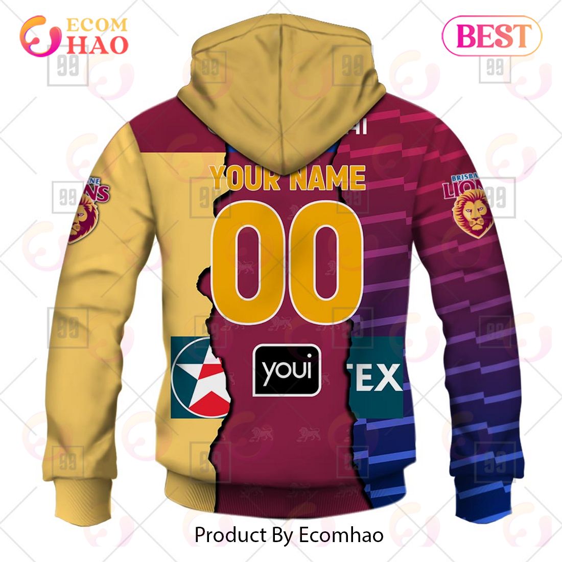 AFL Brisbane Lions Custom Name Number 2023 Mix Guernsey Pullover Hoodie