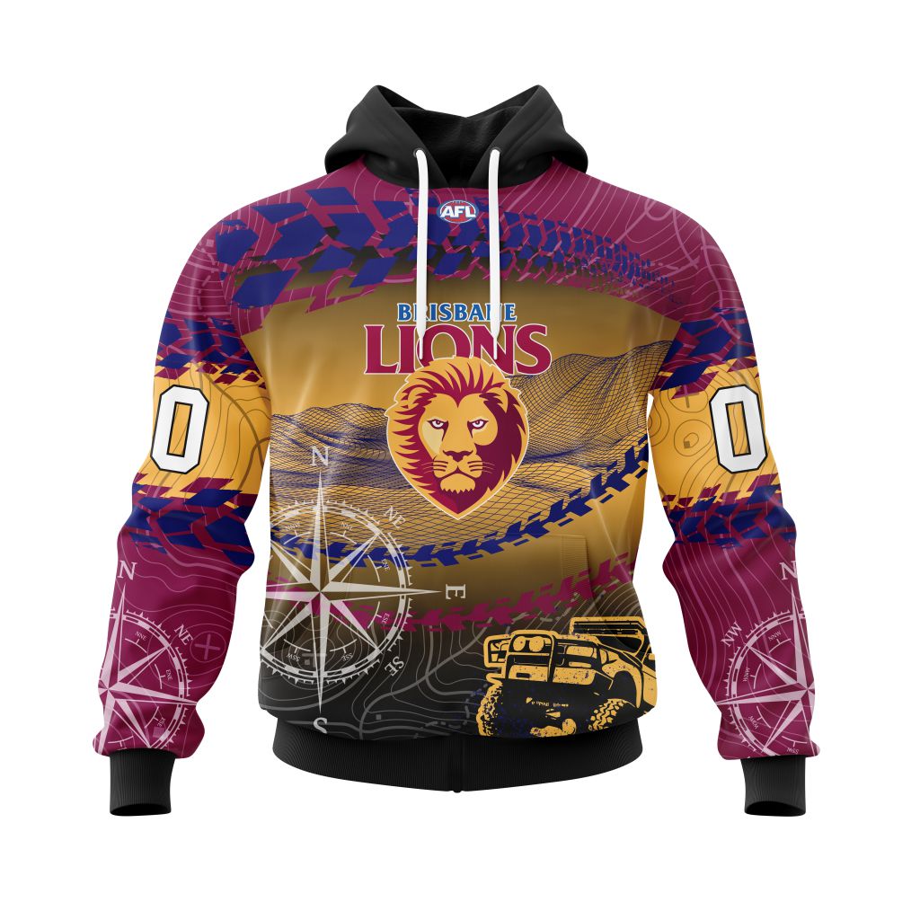 AFL Brisbane Lions Custom Name Number Special Off-Road Concept Pullover Hoodie Product Features