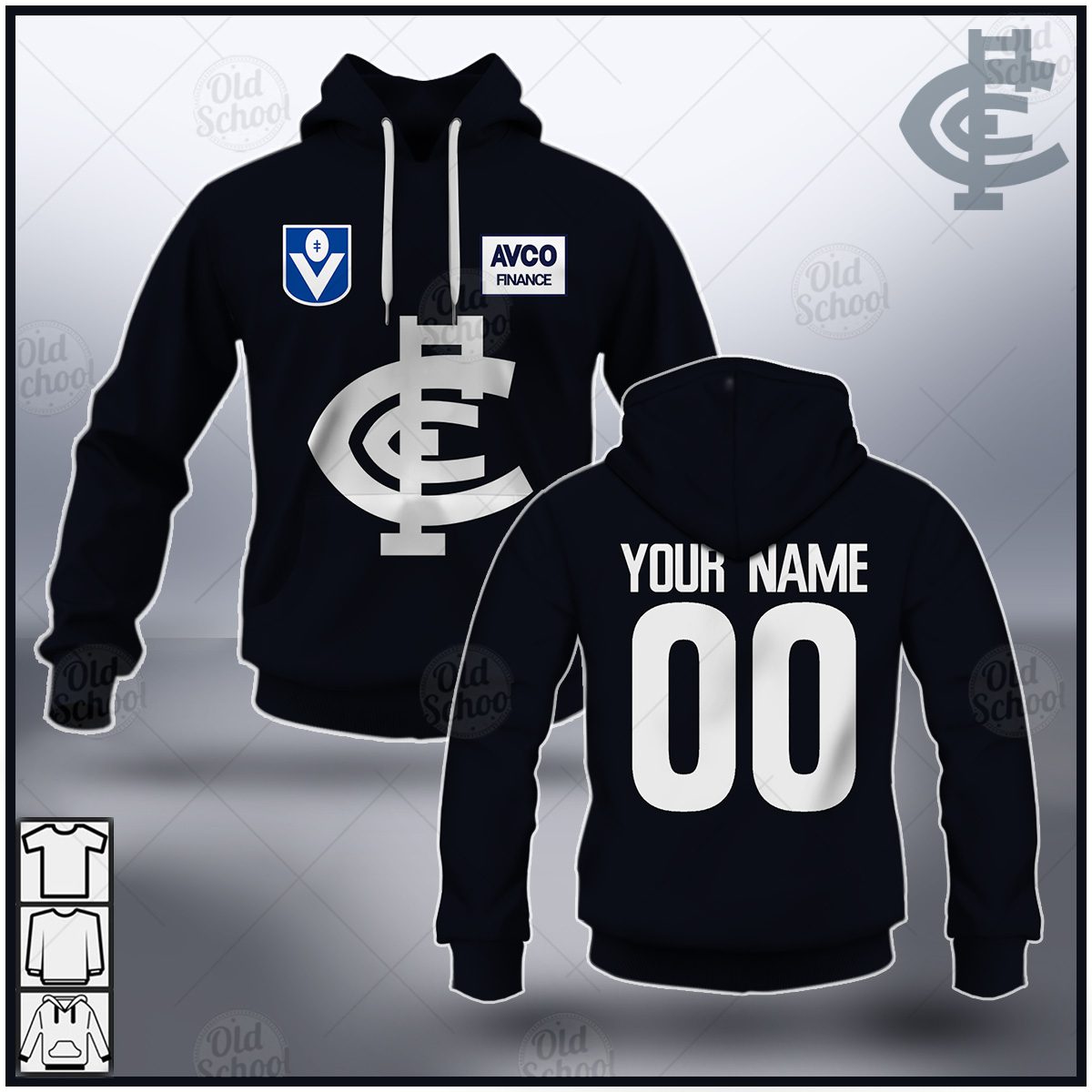 Epic Fanatic GearAFL Carlton Blues Custom Name Number Vintage Heritage 1987 Guernsey Pullover Hoodie