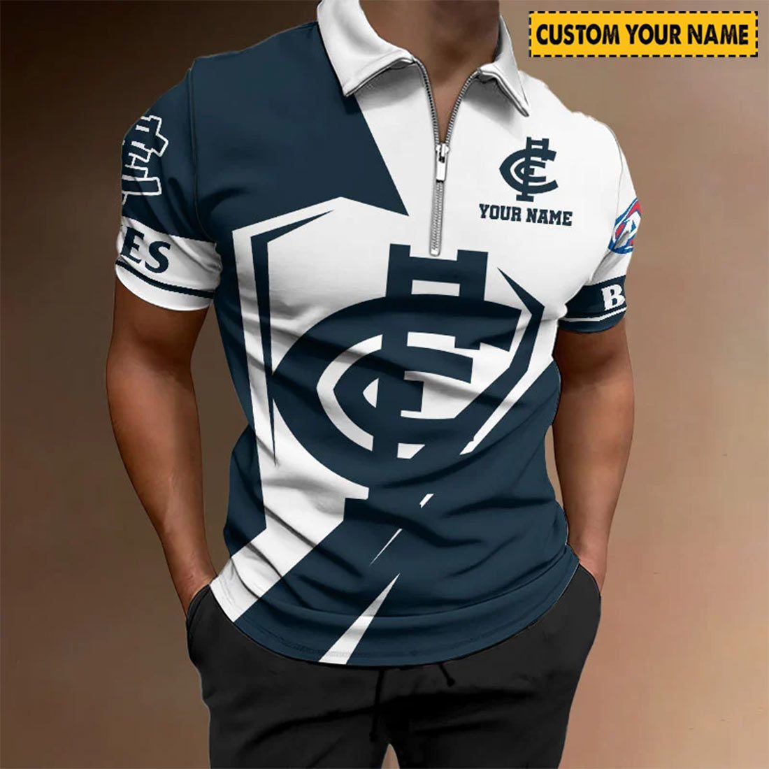 AFL Carlton Blues Custom Name Special Edition Zipper Polo Shirt
