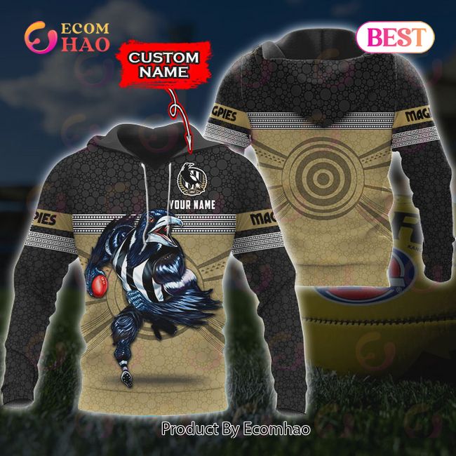 AFL Collingwood Magpies Custom Name Indigenous Mascot Pullover Hoodie Product Features Along with its Collingwood Magpies graphics, this cozy pullover hoodie features super-soft midweight material. Material: 95% polyester + 5% spandex. The fabric is durable and resistant to wrinkles, shrinking and mildew. Hood with drawstrings. Long sleeve. Front pouch pocket. Midweight hoodie suitable for moderate...