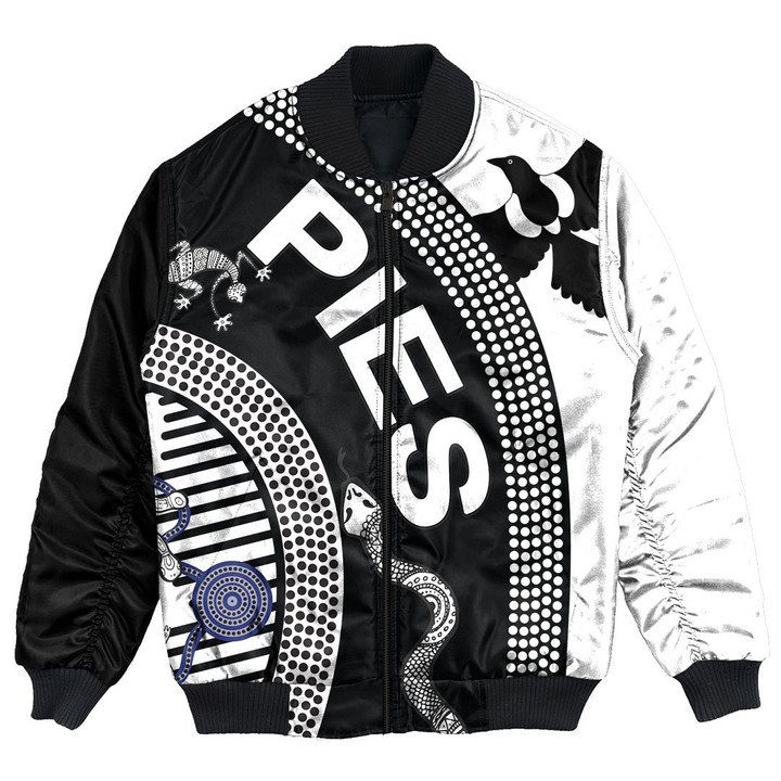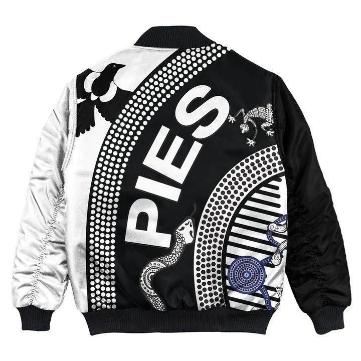 AFL Collingwood Magpies Indigenous Bomber Jacket Product Features This sweet bomber jacket features crisp Collingwood Magpies graphics that put your fandom proudly on display, so no one will be able to question your allegiance. Always on-trend: Matches seamlessly with anything underneath ? definitely a wardrobe staple. Comfy & warm: With ample lining inside, this jacket...