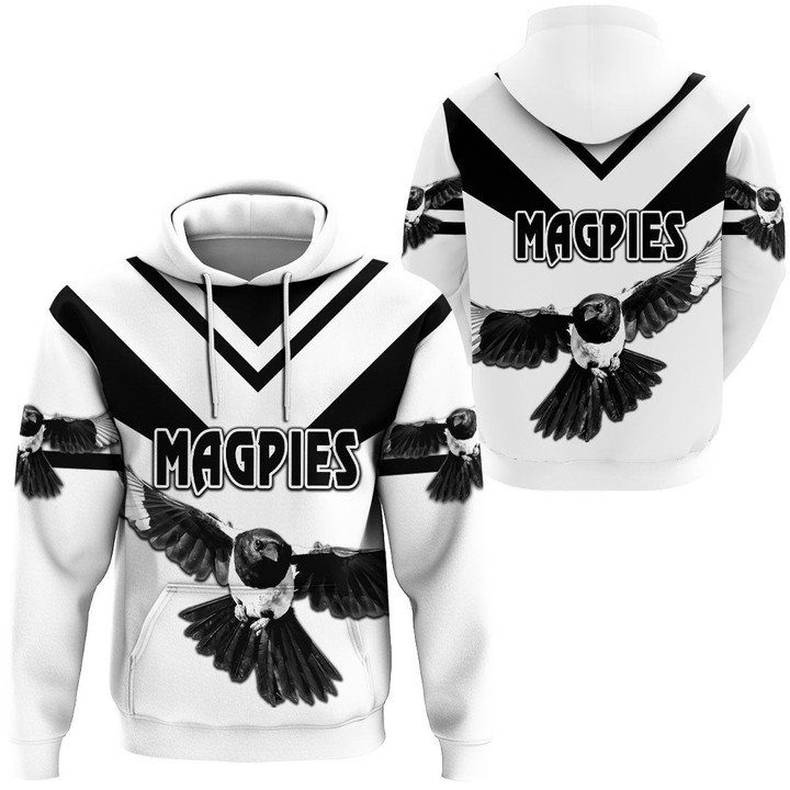 AFL Collingwood Magpies Simple Style White Pullover Hoodie Product Features Along with its Collingwood Magpies graphics, this cozy pullover hoodie features super-soft midweight material. Material: 95% polyester + 5% spandex. The fabric is durable and resistant to wrinkles, shrinking and mildew. Hood with drawstrings. Long sleeve. Front pouch pocket. Midweight hoodie suitable for moderate temperatures....