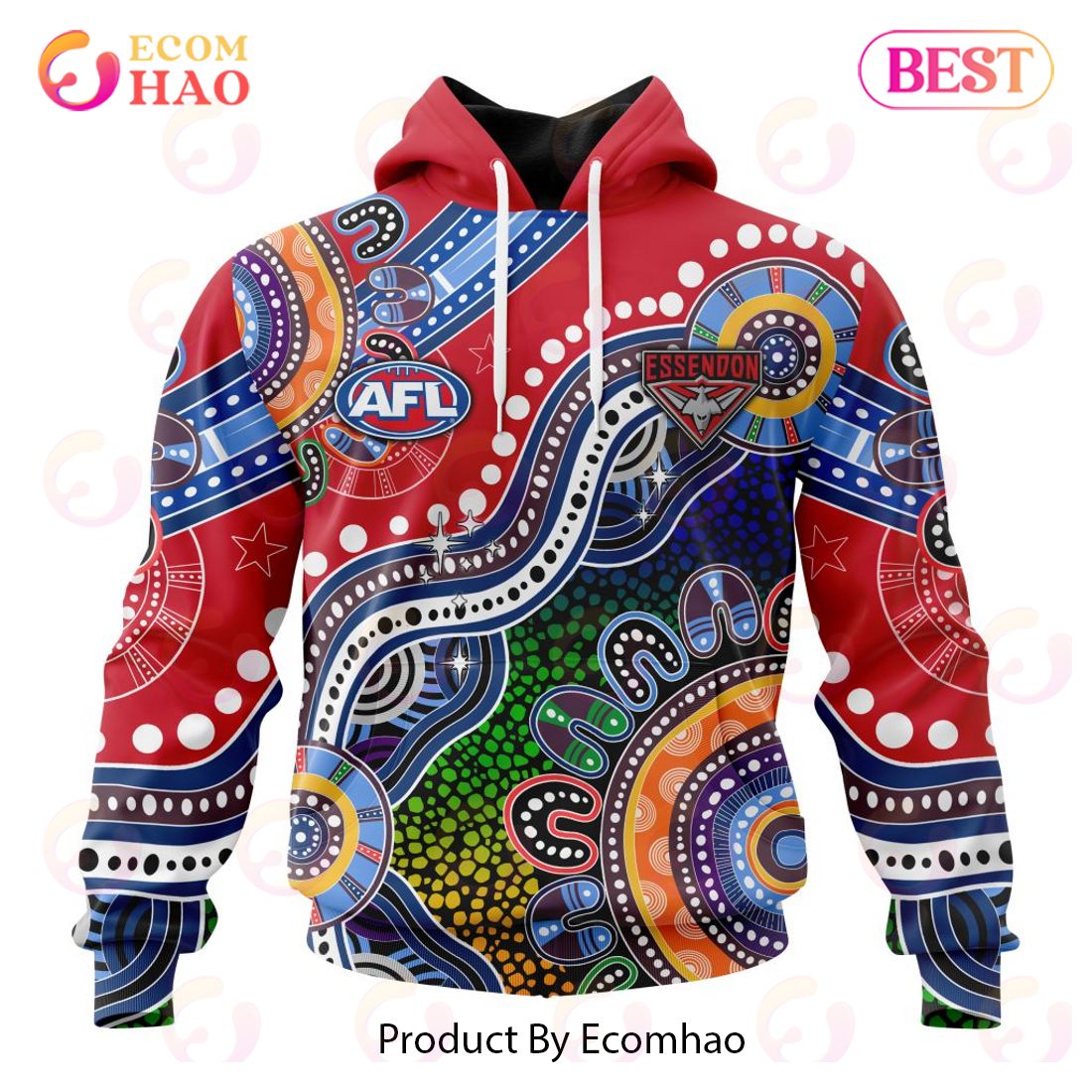 AFL Essendon Bombers Custom Name Number Special Indigenous Pullover Hoodie Product Features Along with its Essendon Bombers graphics, this cozy pullover hoodie features super-soft midweight material. Material: 95% polyester + 5% spandex. The fabric is durable and resistant to wrinkles, shrinking and mildew. Hood with drawstrings. Long sleeve. Front pouch pocket. Midweight hoodie suitable for...