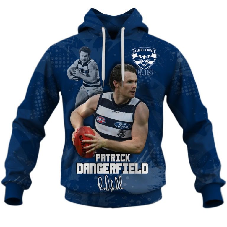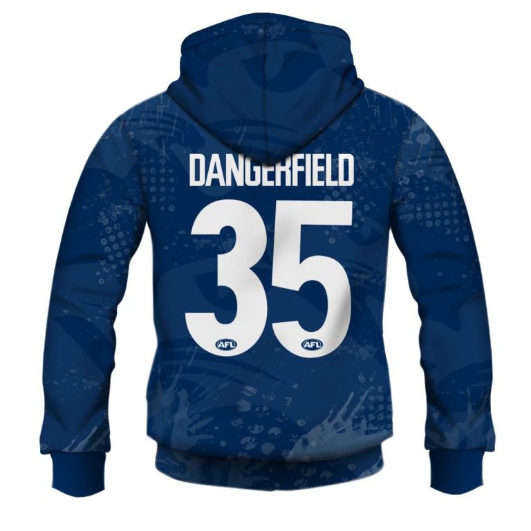 AFL Geelong Cats Patrick Dangerfield #35 Pullover Hoodie Product Features Along with its Geelong Cats graphics, this cozy pullover hoodie features super-soft midweight material. Material: 95% polyester + 5% spandex. The fabric is durable and resistant to wrinkles, shrinking and mildew. Hood with drawstrings. Long sleeve. Front pouch pocket. Midweight hoodie suitable for moderate temperatures....