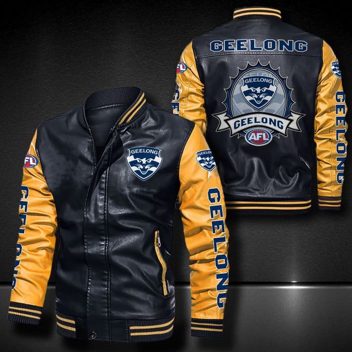 Epic Fanatic GearAFL Geelong Cats Yellow Black Leather Bomber Jacket