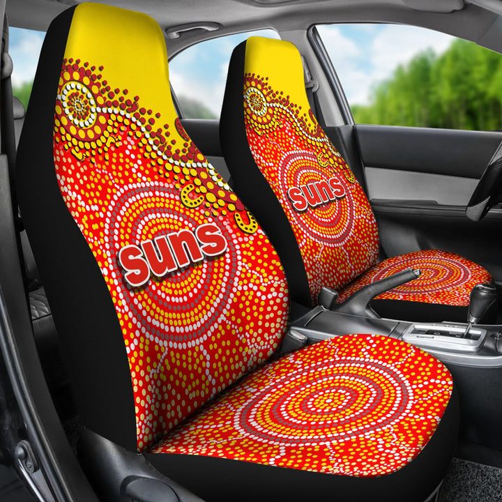 Product Features Our Gold Coast Suns Car Seat Covers are custom-made-to-order and handcrafted to the highest quality standards. Constructed with high quality polyester micro-fiber fabric for maximum durability and comfort. Add style to your seats while protecting them from spills, stains, tearing, fading and more. Designed for quick and easy installation on most car and...Car Seat Covers