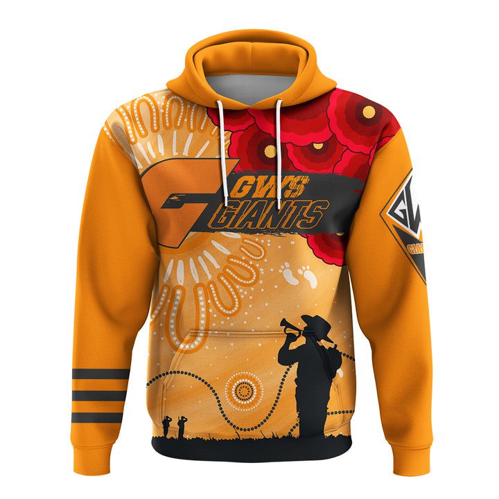 AFL Greater Western Sydney Giants Custom Name ANZAC Day Pullover Hoodie Product Features Along with its Greater Western Sydney Giants graphics, this cozy pullover hoodie features super-soft midweight material. Material: 95% polyester + 5% spandex. The fabric is durable and resistant to wrinkles, shrinking and mildew. Hood with drawstrings. Long sleeve. Front pouch pocket. Midweight...