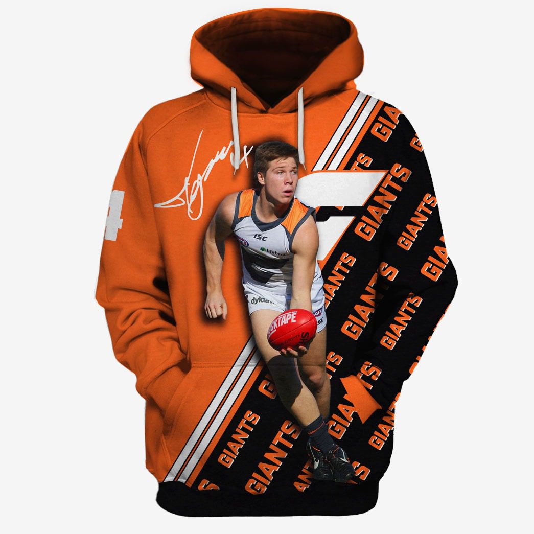 AFL Greater Western Sydney Giants Toby Greene No 4 Pullover Hoodie Product Features Along with its Greater Western Sydney Giants graphics, this cozy pullover hoodie features super-soft midweight material. Material: 95% polyester + 5% spandex. The fabric is durable and resistant to wrinkles, shrinking and mildew. Hood with drawstrings. Long sleeve. Front pouch pocket. Midweight...