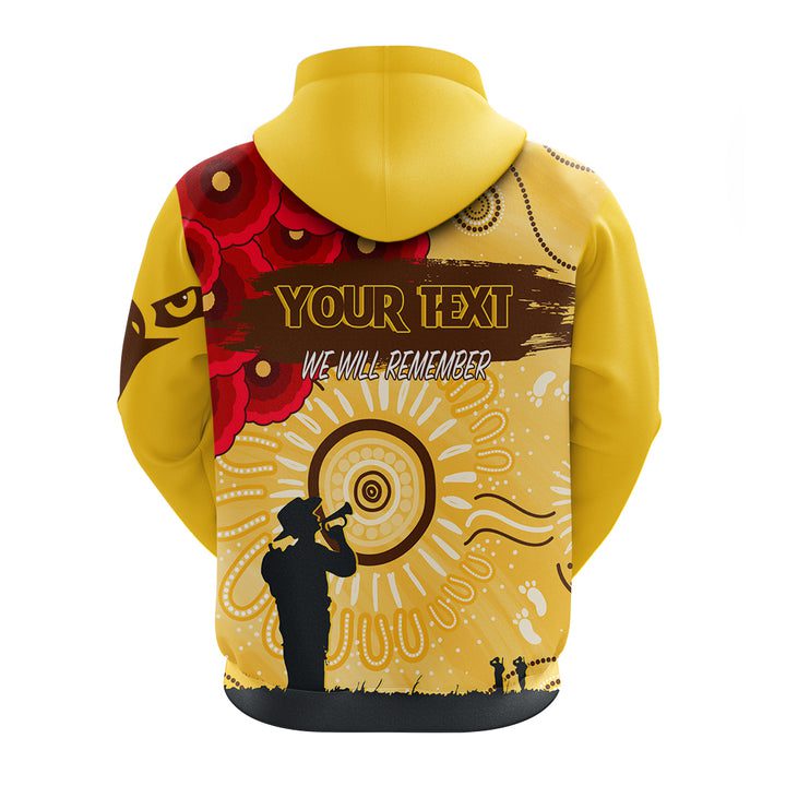 AFL Hawthorn Hawks Custom Name Indigenous ANZAC Day Gold Pullover Hoodie Product Features