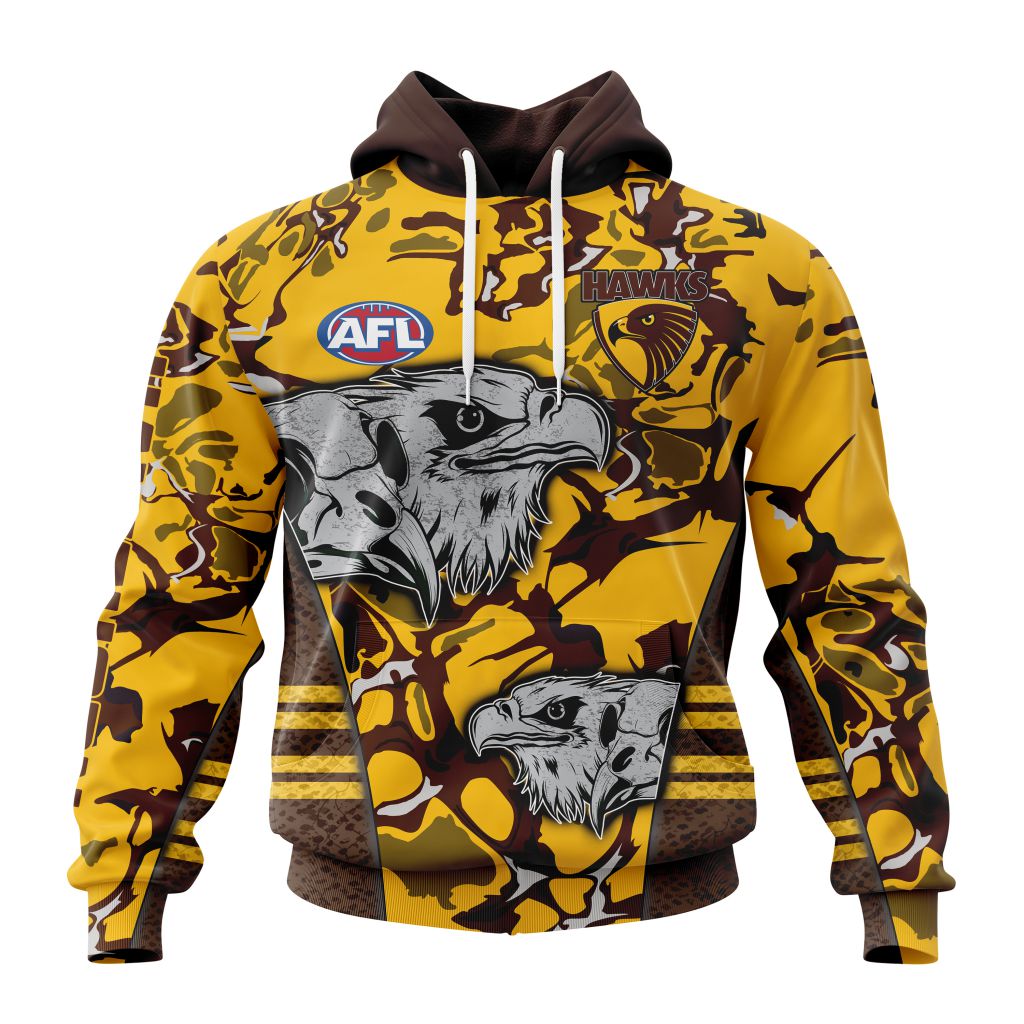 AFL Hawthorn Hawks Custom Name Number Camo Morden Art Style Pullover Hoodie Product Features