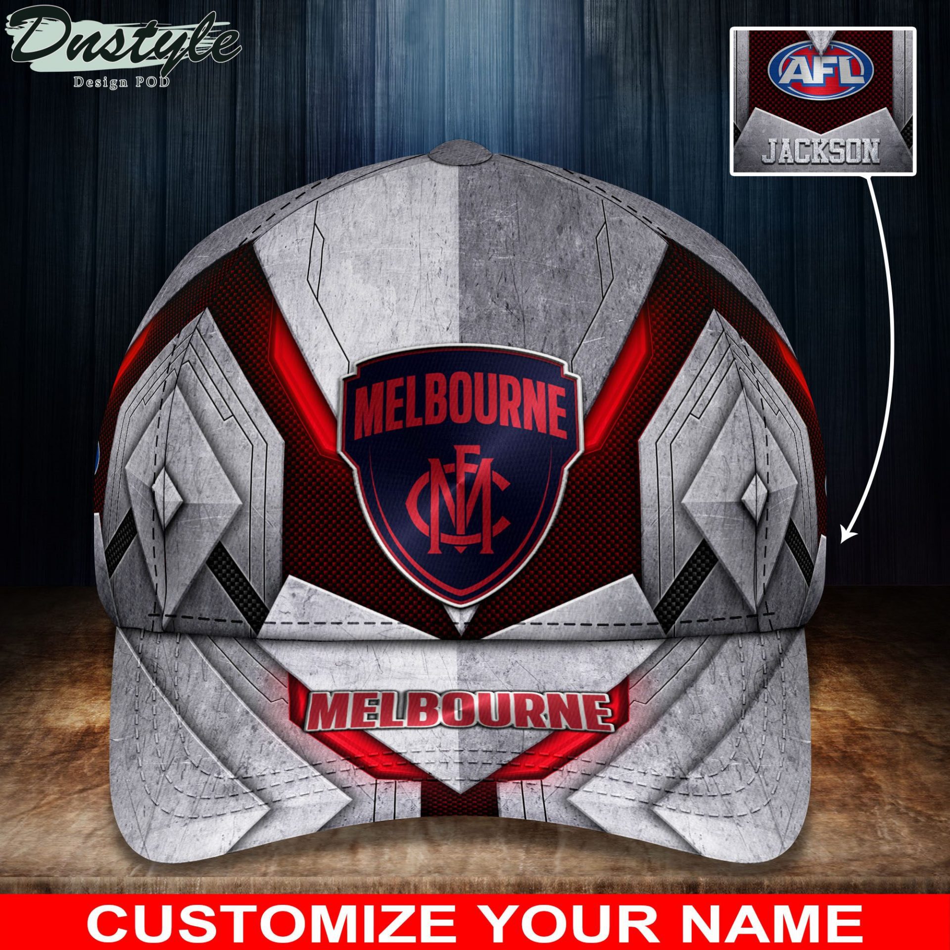 Epic Fanatic GearAFL Melbourne Demons Custom Name Grey Red Classic Cap