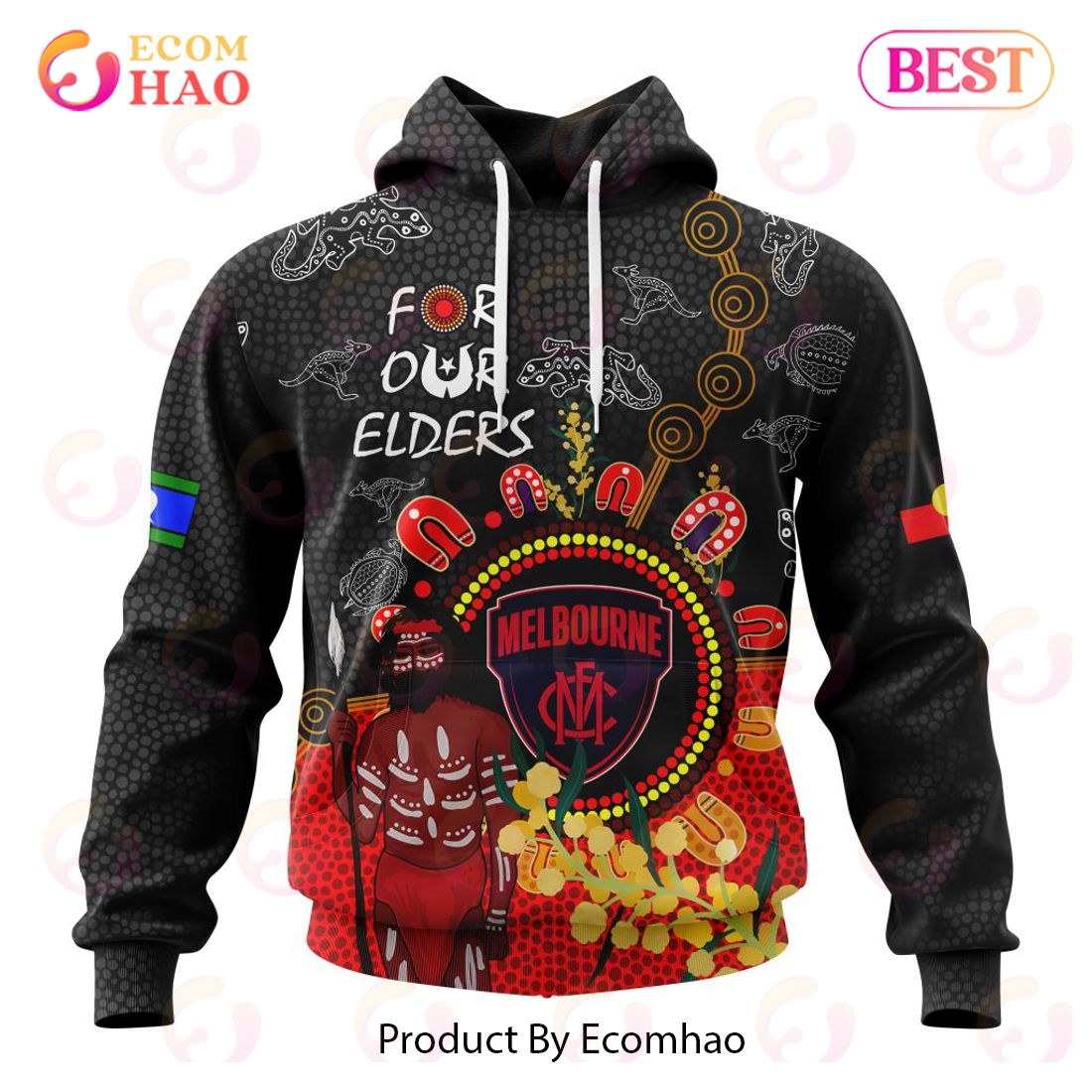 AFL Melbourne Demons Custom Name Number Special NAIDOC Design Pullover Hoodie Product Features Along with its Melbourne Demons graphics, this cozy pullover hoodie features super-soft midweight material. Material: 95% polyester + 5% spandex. The fabric is durable and resistant to wrinkles, shrinking and mildew. Hood with drawstrings. Long sleeve. Front pouch pocket. Midweight hoodie suitable...