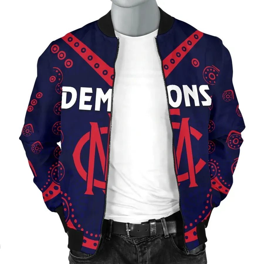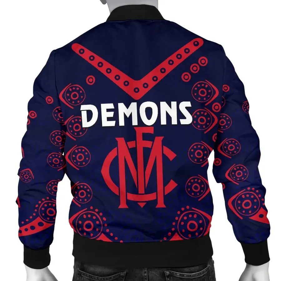 AFL Melbourne Demons Indigenous Bomber Jacket Product Features This sweet bomber jacket features crisp Melbourne Demons graphics that put your fandom proudly on display, so no one will be able to question your allegiance. Always on-trend: Matches seamlessly with anything underneath ? definitely a wardrobe staple. Comfy & warm: With ample lining inside, this jacket...