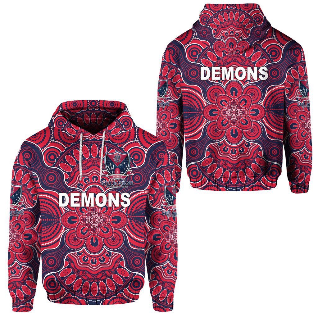 AFL Melbourne Demons Indigenous Pullover Hoodie Product Features Along with its Melbourne Demons graphics, this cozy pullover hoodie features super-soft midweight material. Material: 95% polyester + 5% spandex. The fabric is durable and resistant to wrinkles, shrinking and mildew. Hood with drawstrings. Long sleeve. Front pouch pocket. Midweight hoodie suitable for moderate temperatures. Features a...