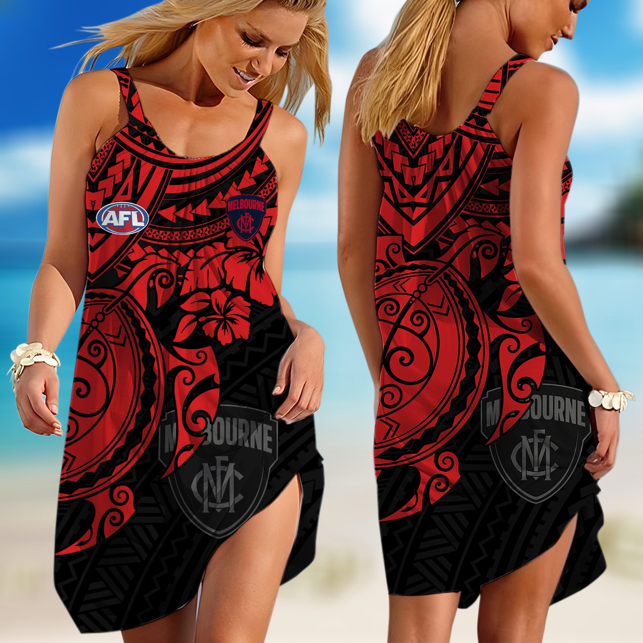 Epic Fanatic GearAFL Melbourne Football Club Polynesian Sleeveless Summer Beach Sundress for Women
