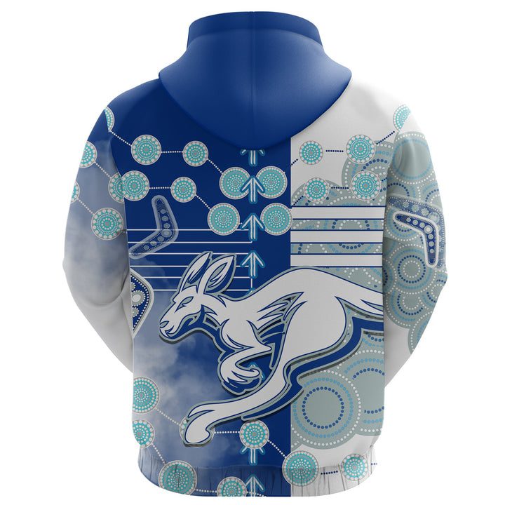 AFL North Melbourne Kangaroos Indigenous Pullover Hoodie V2 Product Features Along with its North Melbourne Kangaroos graphics, this cozy pullover hoodie features super-soft midweight material. Material: 95% polyester + 5% spandex. The fabric is durable and resistant to wrinkles, shrinking and mildew. Hood with drawstrings. Long sleeve. Front pouch pocket. Midweight hoodie suitable for moderate...