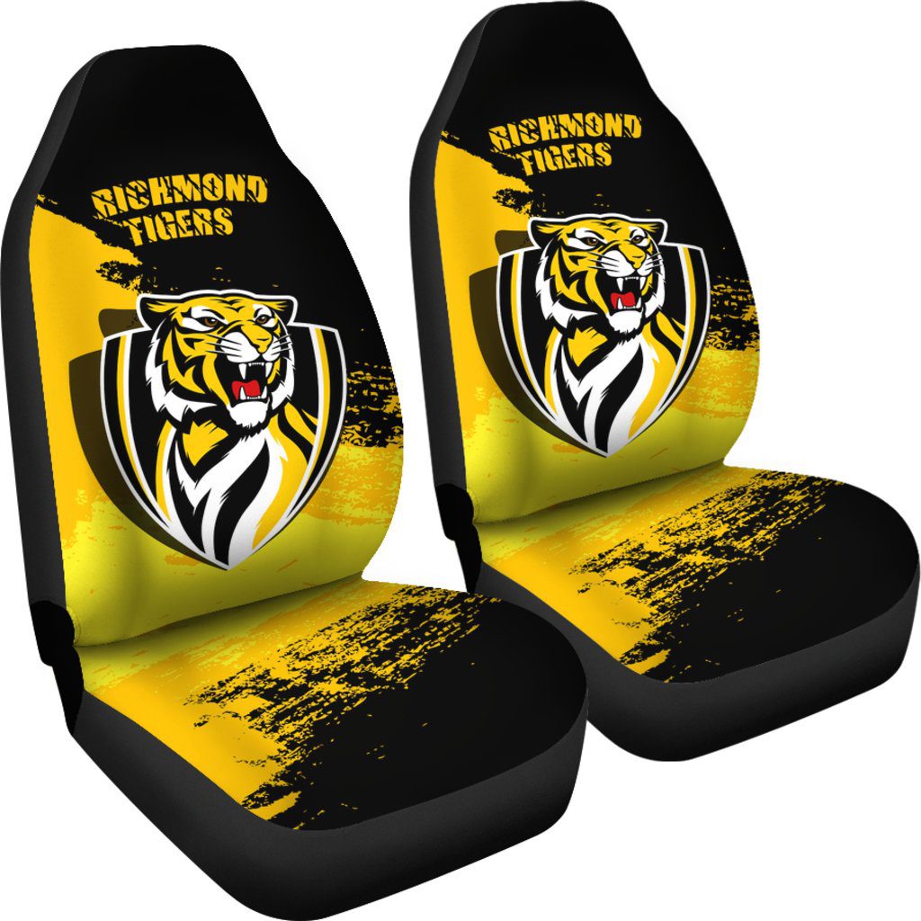Product Features Our Richmond Tigers Car Seat Covers are custom-made-to-order and handcrafted to the highest quality standards. Constructed with high quality polyester micro-fiber fabric for maximum durability and comfort. Add style to your seats while protecting them from spills, stains, tearing, fading and more. Designed for quick and easy installation on most car and SUV...Car Seat Covers