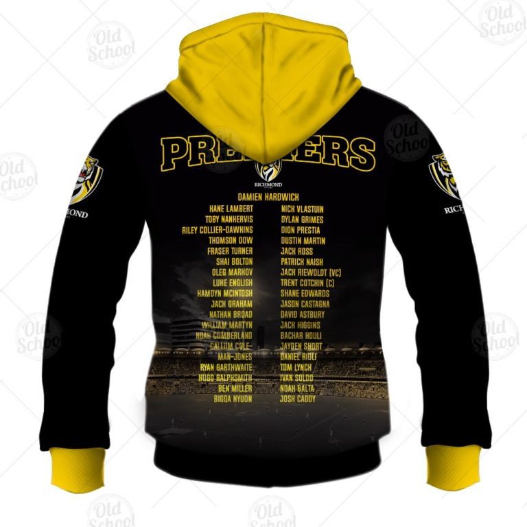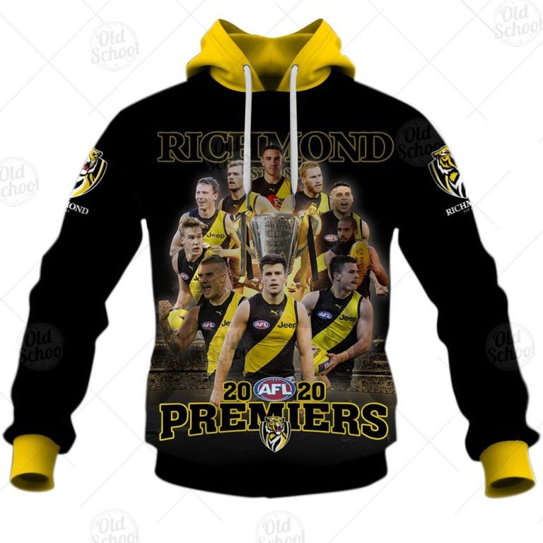 AFL Richmond Tigers Grand Final 2020 Premiers Pullover Hoodie Product Features Along with its Richmond Tigers graphics, this cozy pullover hoodie features super-soft midweight material. Material: 95% polyester + 5% spandex. The fabric is durable and resistant to wrinkles, shrinking and mildew. Hood with drawstrings. Long sleeve. Front pouch pocket. Midweight hoodie suitable for moderate...