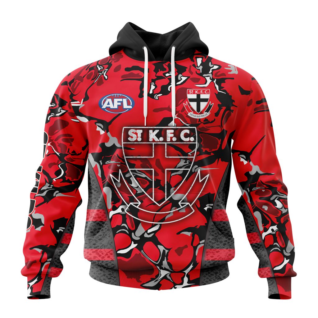 AFL St Kilda Saints Custom Name Number Morden Art Pullover Hoodie Product Features Along with its St Kilda Saints graphics, this cozy pullover hoodie features super-soft midweight material. Material: 95% polyester + 5% spandex. The fabric is durable and resistant to wrinkles, shrinking and mildew. Hood with drawstrings. Long sleeve. Front pouch pocket. Midweight hoodie...