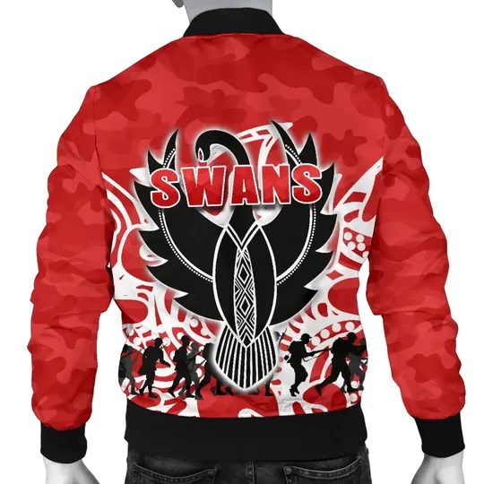 AFL Sydney Swans ANZAC Day Bomber Jacket Product Features This sweet bomber jacket features crisp Sydney Swans graphics that put your fandom proudly on display, so no one will be able to question your allegiance. Always on-trend: Matches seamlessly with anything underneath ? definitely a wardrobe staple. Comfy & warm: With ample lining inside, this...
