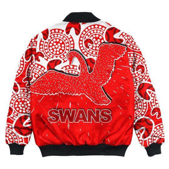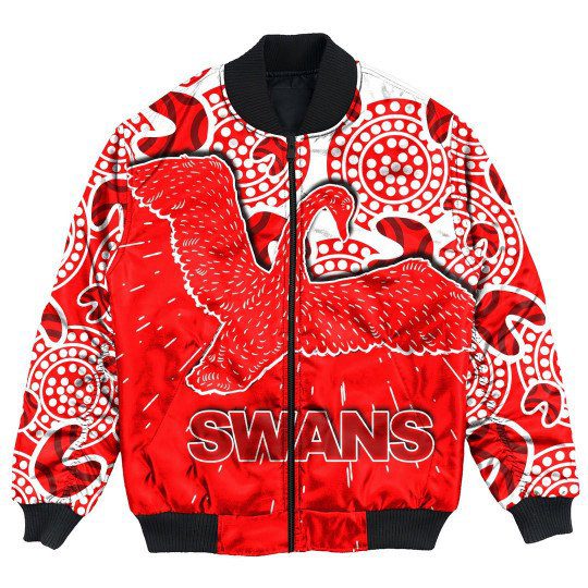 AFL Sydney Swans Indigenous Bomber Jacket Product Features This sweet bomber jacket features crisp Sydney Swans graphics that put your fandom proudly on display, so no one will be able to question your allegiance. Always on-trend: Matches seamlessly with anything underneath ? definitely a wardrobe staple. Comfy & warm: With ample lining inside, this jacket...