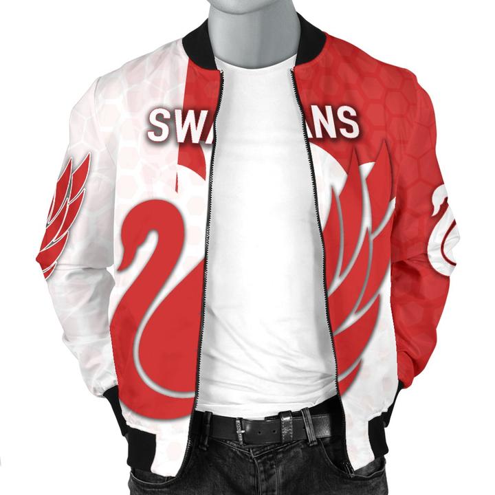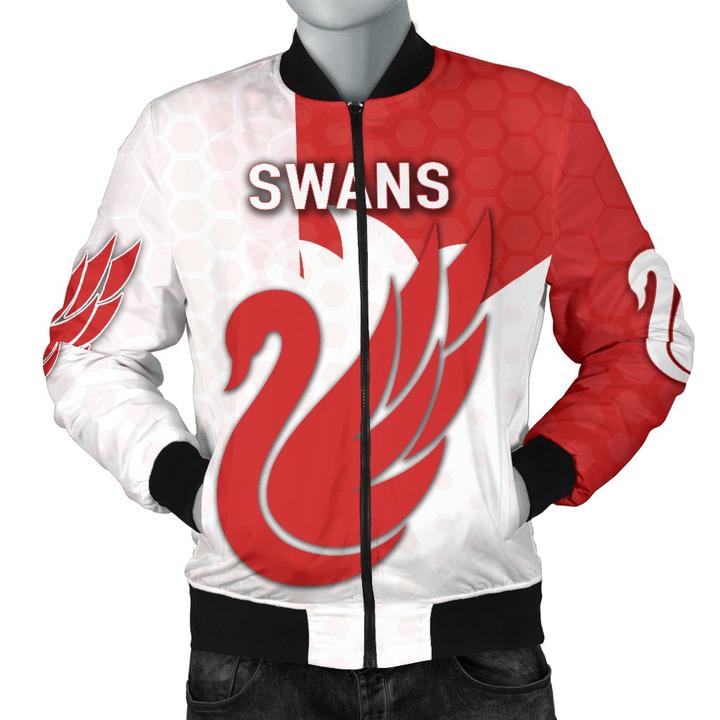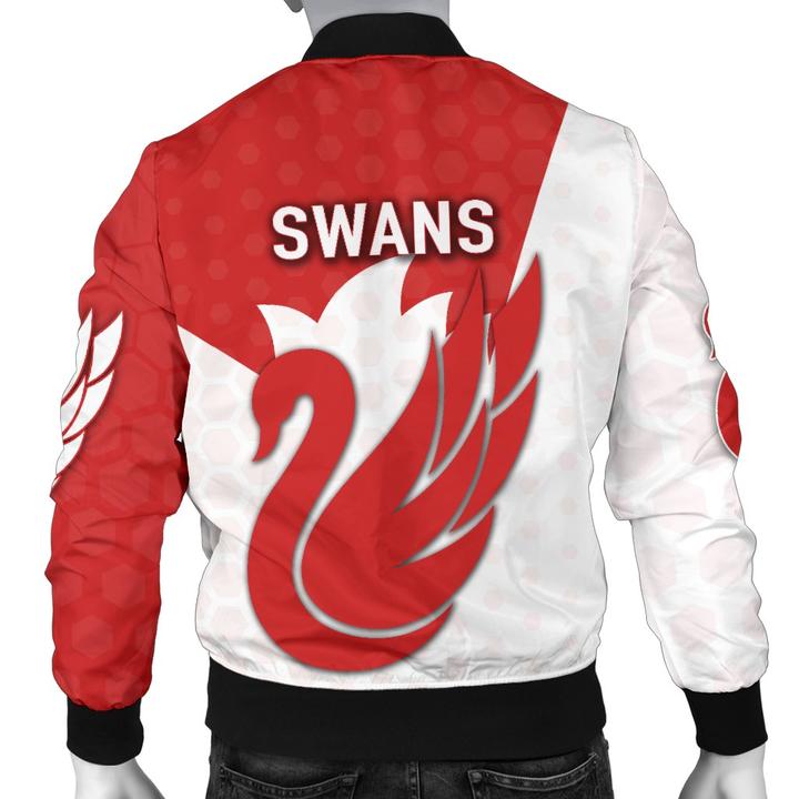AFL Sydney Swans Red White Bomber Jacket Product Features This sweet bomber jacket features crisp Sydney Swans graphics that put your fandom proudly on display, so no one will be able to question your allegiance. Always on-trend: Matches seamlessly with anything underneath ? definitely a wardrobe staple. Comfy & warm: With ample lining inside, this...