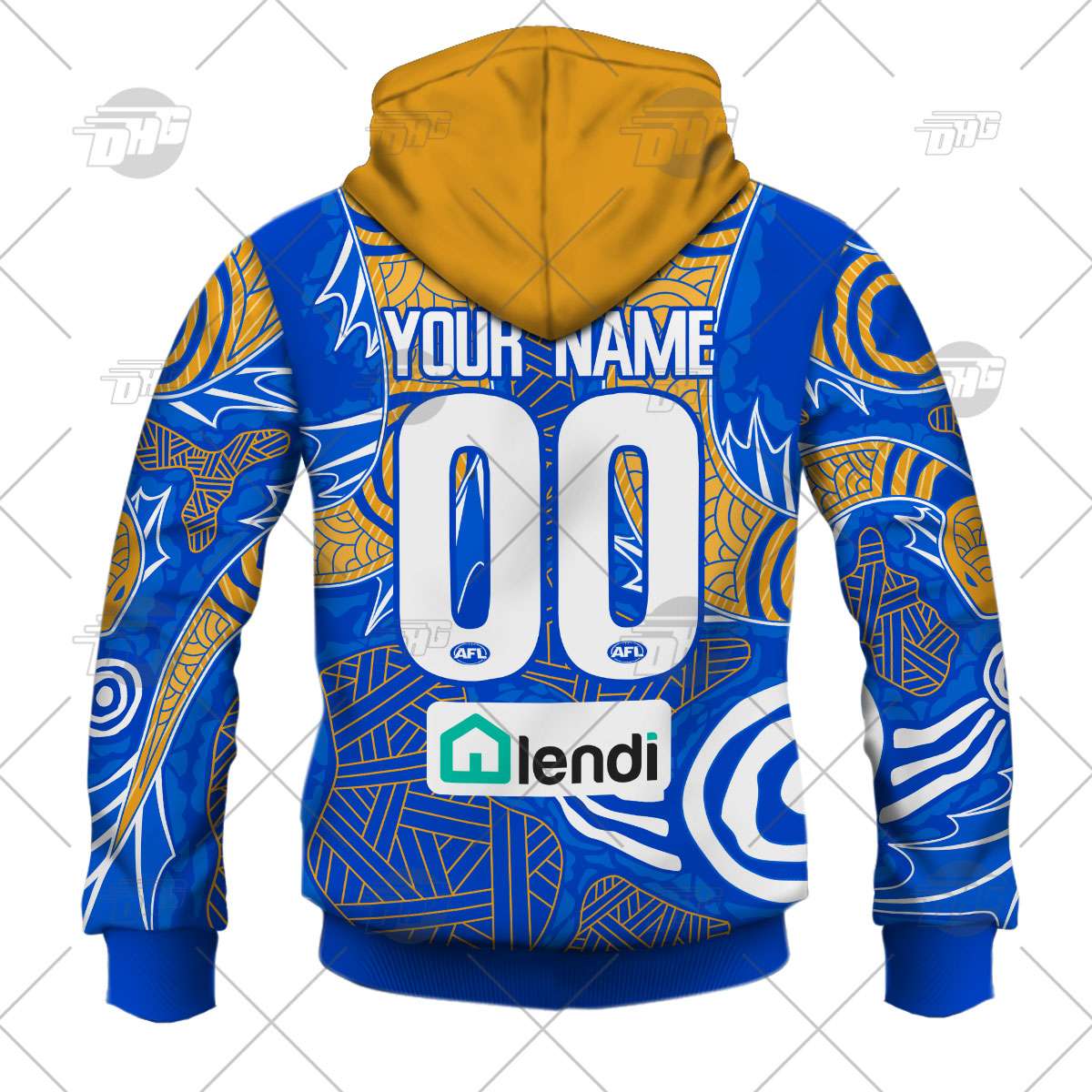 AFL West Coast Eagles Custom Name Number 2022 Indigenous Guernsey Pullover Hoodie Product Features Along with its West Coast Eagles graphics, this cozy pullover hoodie features super-soft midweight material. Material: 95% polyester + 5% spandex. The fabric is durable and resistant to wrinkles, shrinking and mildew. Hood with drawstrings. Long sleeve. Front pouch pocket. Midweight...