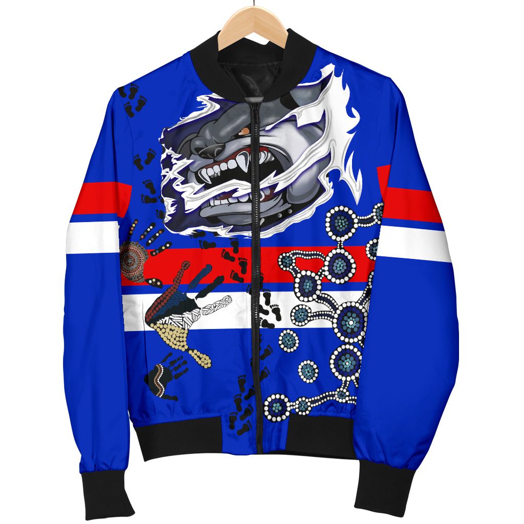 AFL Western Bulldogs Blue Bomber Jacket Product Features This sweet bomber jacket features crisp Western Bulldogs graphics that put your fandom proudly on display, so no one will be able to question your allegiance. Always on-trend: Matches seamlessly with anything underneath ? definitely a wardrobe staple. Comfy & warm: With ample lining inside, this jacket...