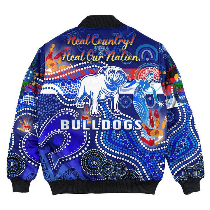 AFL Western Bulldogs Indigenous Bomber Jacket Product Features This sweet bomber jacket features crisp Western Bulldogs graphics that put your fandom proudly on display, so no one will be able to question your allegiance. Always on-trend: Matches seamlessly with anything underneath ? definitely a wardrobe staple. Comfy & warm: With ample lining inside, this jacket...