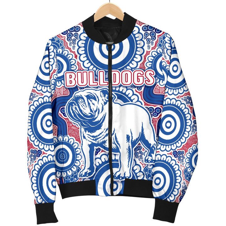 AFL Western Bulldogs Simple Indigenous Bomber Jacket Product Features This sweet bomber jacket features crisp Western Bulldogs graphics that put your fandom proudly on display, so no one will be able to question your allegiance. Always on-trend: Matches seamlessly with anything underneath ? definitely a wardrobe staple. Comfy & warm: With ample lining inside, this...