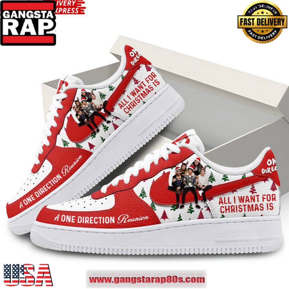All I Want for Christmas is One Direction Limited Edition Air Force 1 Sneakers Shoes This holiday season, capture the spirit of nostalgia and trend-setting style with the exclusive One Direction Limited Edition Air Force 1 Sneakers. Fanatical footwear enthusiasts and dedicated Directioners will appreciate these unique sneakers that marry pop culture with premium craftsmanship....