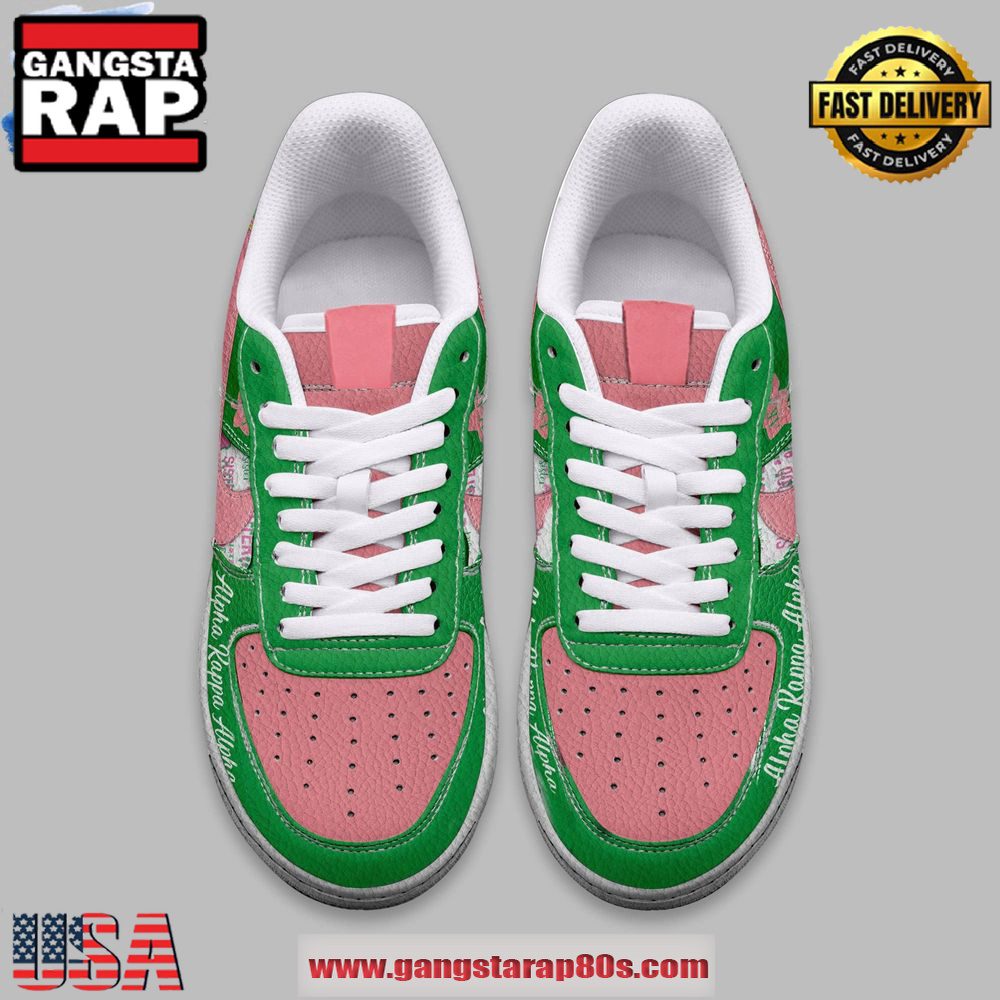 Featuring a distinct design that incorporates elements reflecting the proud legacy of Alpha Kappa Alpha, these sneakers aren?t just footwear; they?re a statement. The limited edition release status elevates their appeal, ensuring you stand out with a pair that speaks to both your style and affiliation. Additionally, the incorporation of subtle design embellishments and superior craftsmanship guarantees that these shoes will attract attention wherever you go.