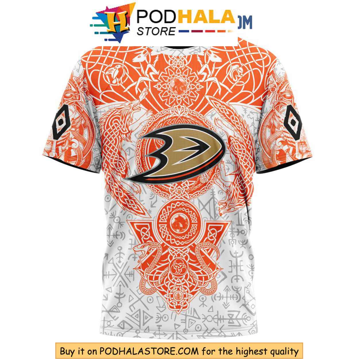 Anaheim Ducks 3D Hoodie with Norse Viking Symbols, Custom Name Hockey Apparel