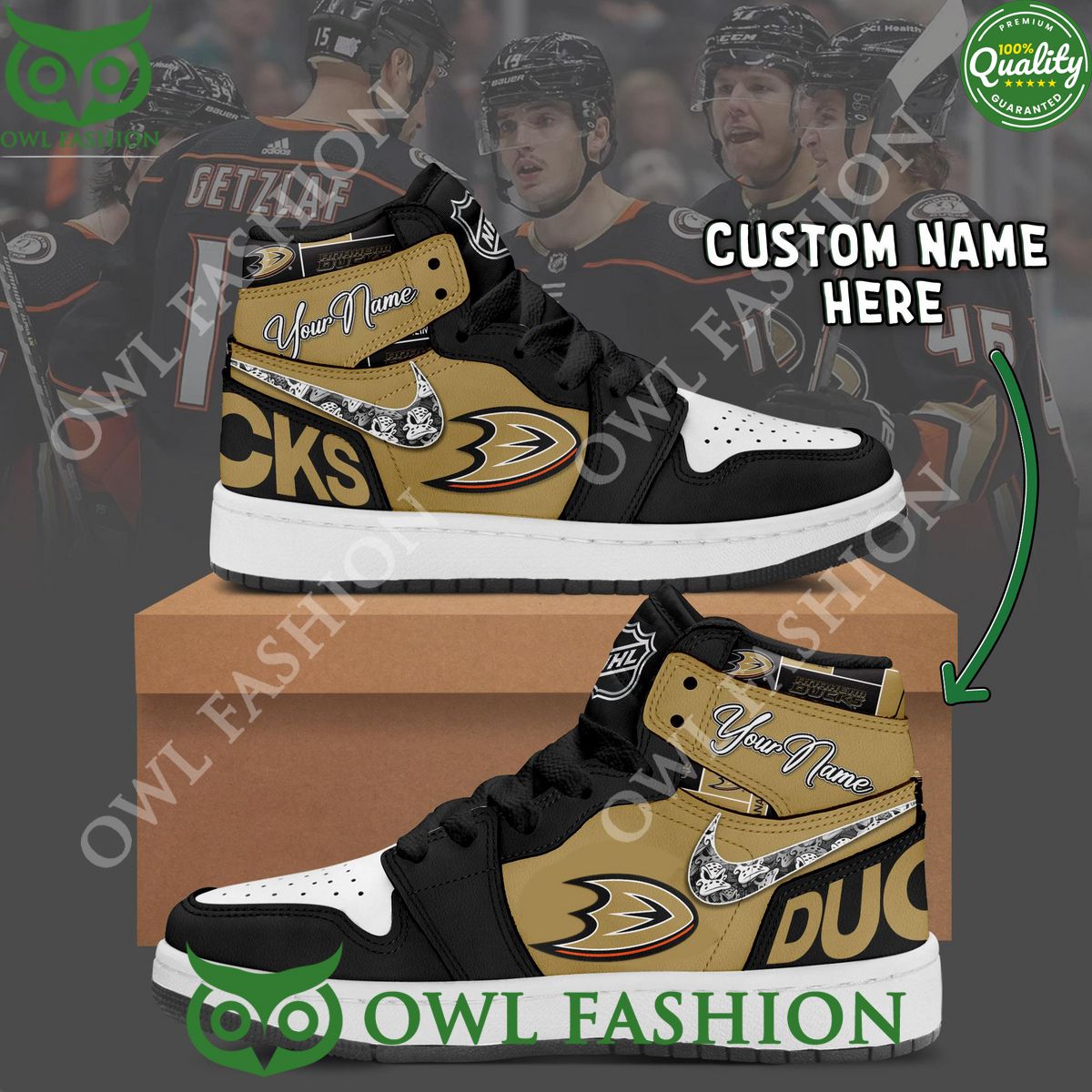 Introduction: For devoted fans of the Anaheim Ducks, supporting the team is more than just a hobby ? it’s a way of life. Introducing the Anaheim Ducks Ice Hockey NHL Personalized Air Jordan High Tops ? a perfect blend of iconic Air Jordan design and the unmistakable branding of the Ducks. Whether you’re hitting the ice or hitting the streets, these personalized high tops are the ultimate way to flaunt your allegiance to the Ducks with unparalleled style and flair.