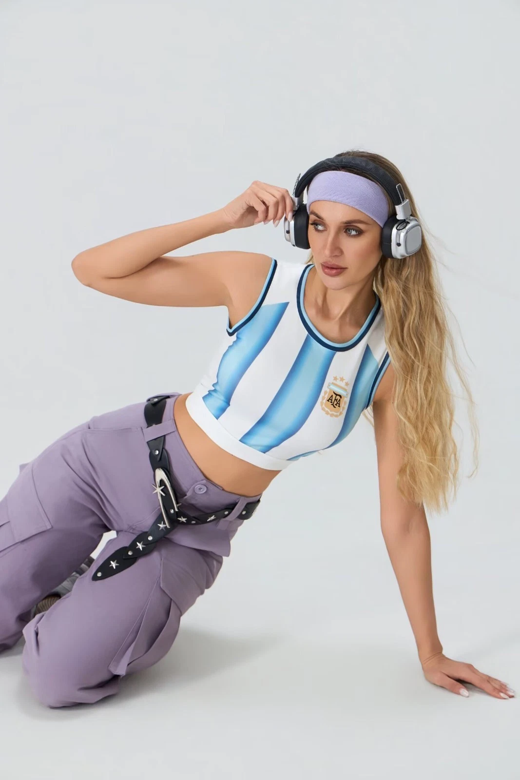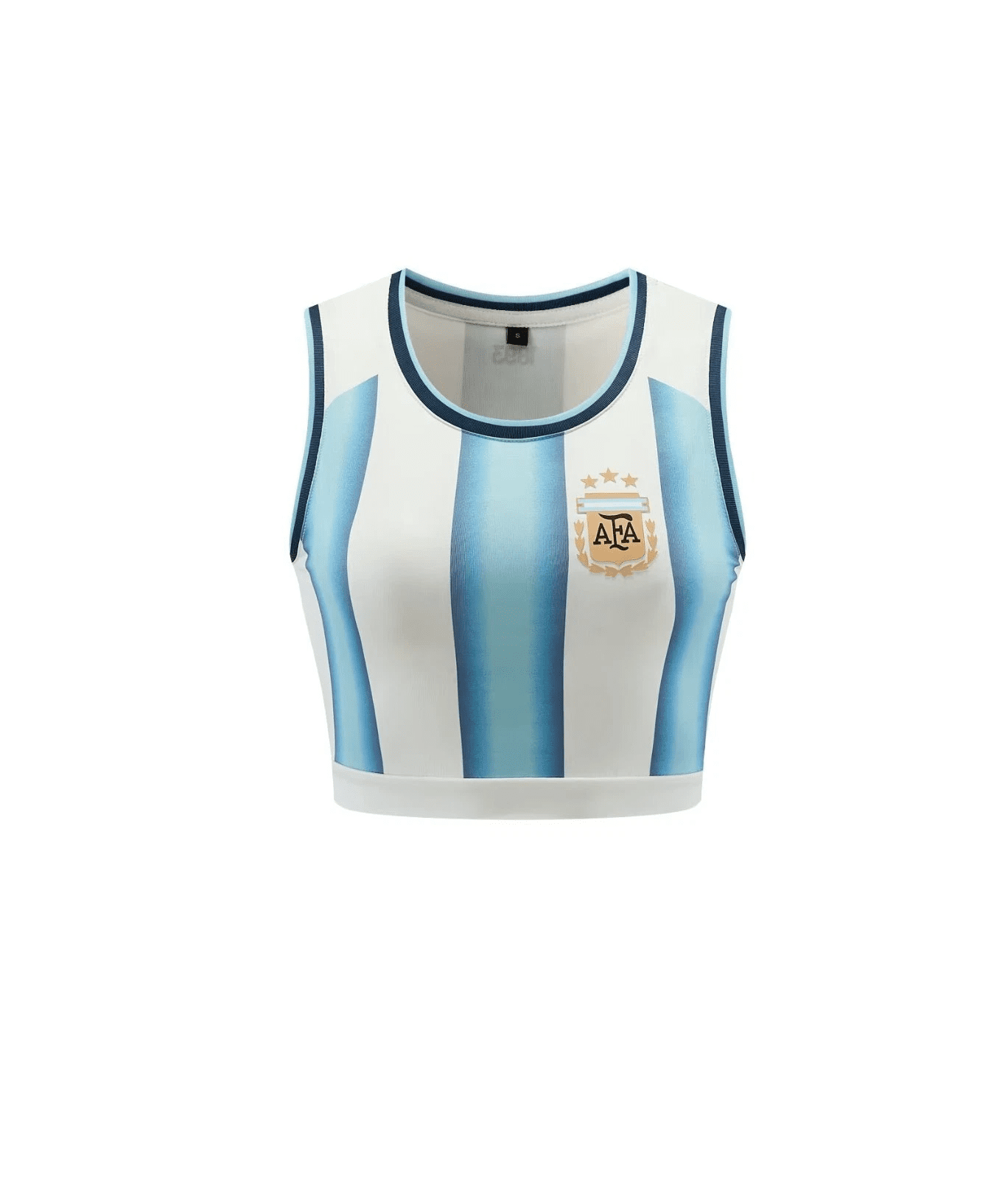 Show your love for the game with this Argentina-style striped crop top jersey. Designed for comfort and style, this sleeveless top is perfect for match days, casual wear, or creating a sporty streetwear look.