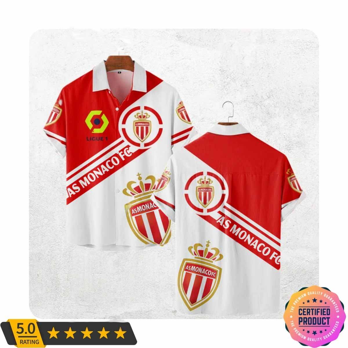 AS Monaco Ligue 1 White Red Hawaiian Shirt