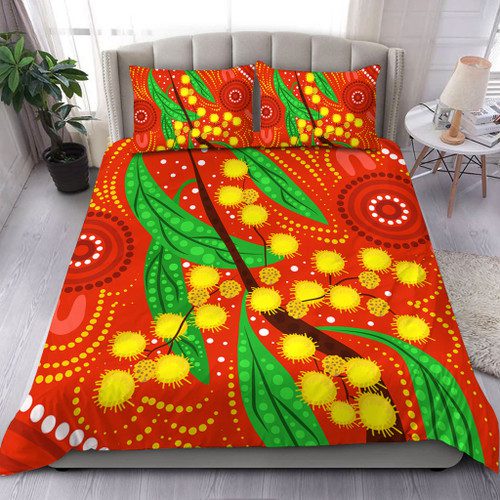 Australia Aboriginal Bedding Set – Aboriginal Dot Art Of Australian Yellow Wattle Painting Bedding Set
