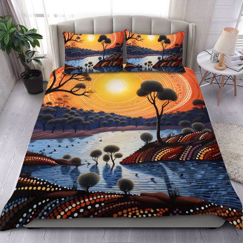 Australia Aboriginal Bedding Set – Aboriginal River In Circle and Dot Painting Bedding Set