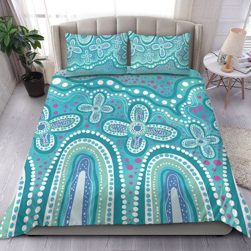 Australia Aboriginal Bedding Set – Dot painting illustration in Aboriginal style Turquoise Bedding Set